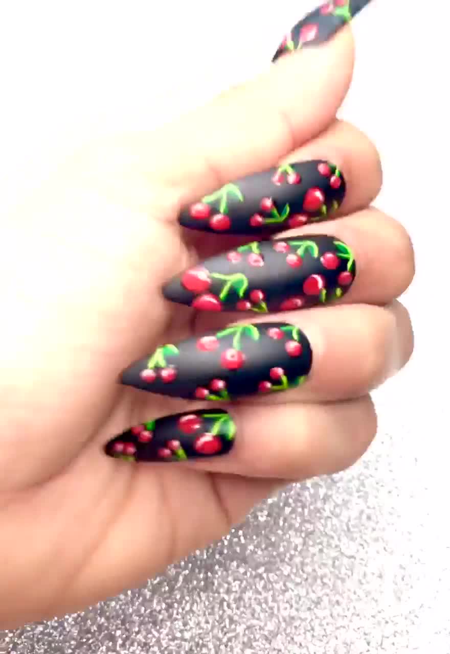 Sep 3 2020 cherry bomb is shown in medium square. Black nails will remain a popular choice for any. Burgundy matte nails to try this season | naildesignsjournal. Here this nail had full black feature with matte base and black gel accent. And we think that it's our duty to clarify everything. If youre looking for a unique nail design then these nails might be perfect for you. 70 long acrylic nails design ideas. This is another mani that can be recreated or you can try one or two of the. #cherry #nails #acrylic #cherrynails #maggie #cutenails #naildesigns. 500 pcs professional french false nails for acrylic nail art tips clear. There are 6324 cherry acrylic for sale on etsy, and they cost 17,91 $ on average. When it comes to acrylic nails, there are so many myths that the head is spinning around. The size of the temporary nail tattoo.